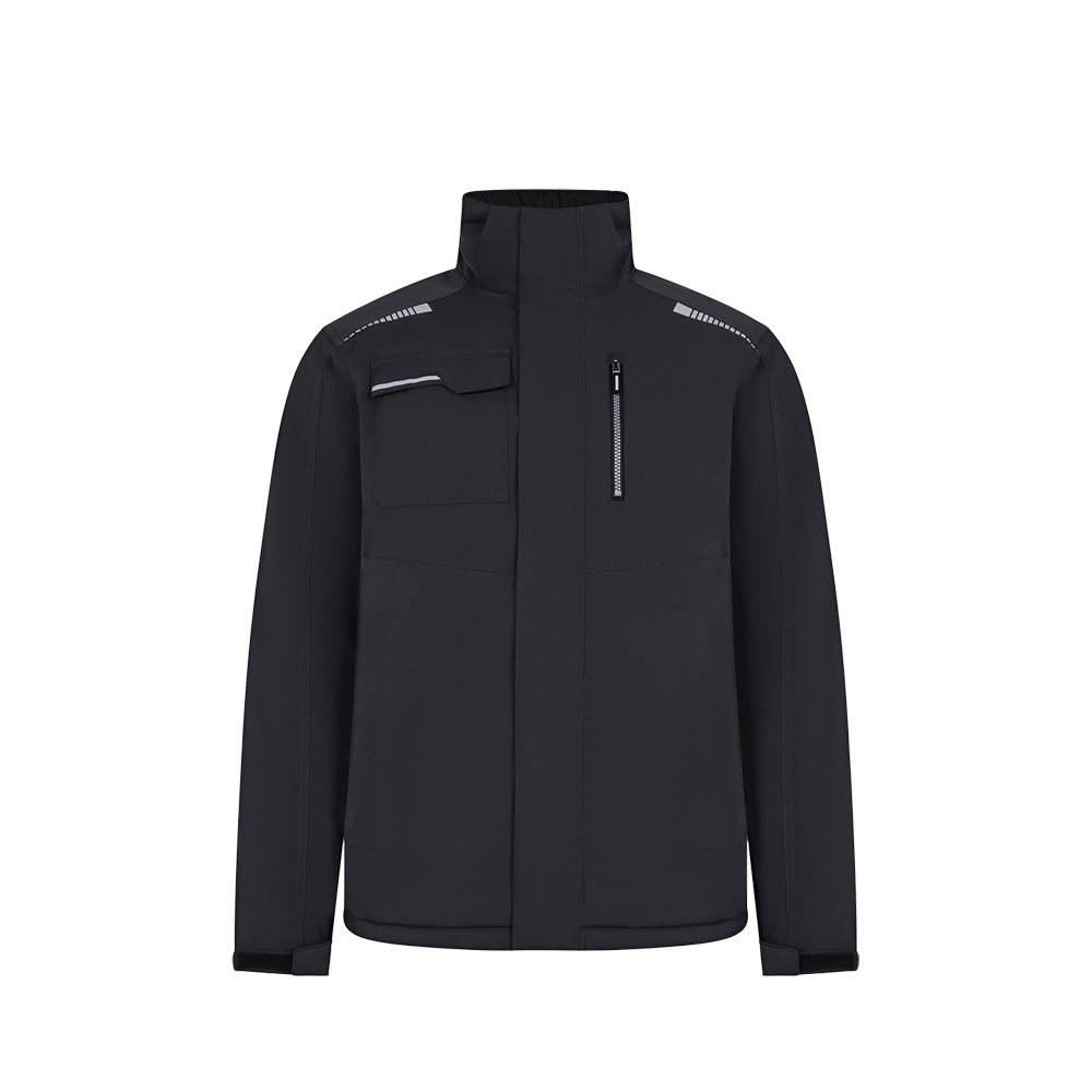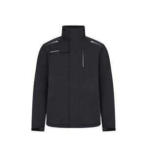 Quilted jacket (180 g/m²), made from recycled polyester (50%) and polyester (50%). Features water-repellent stretch fabric, heat-sealed seams, reflective details and a central zip fastening. The jacket has concealed buttons and six pockets (two side pockets, one left chest pocket, one right chest pocket and one inside pocket). Size: S, M, L, XL, 2XL, 3XL
